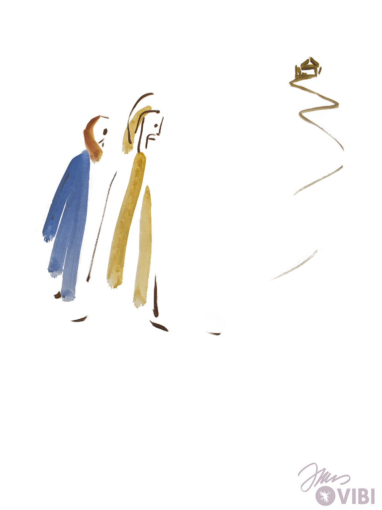 JESUS UND JAIRUS GEHEN NACH HAUSE. VIELE MENSCHEN GEHEN MIT.