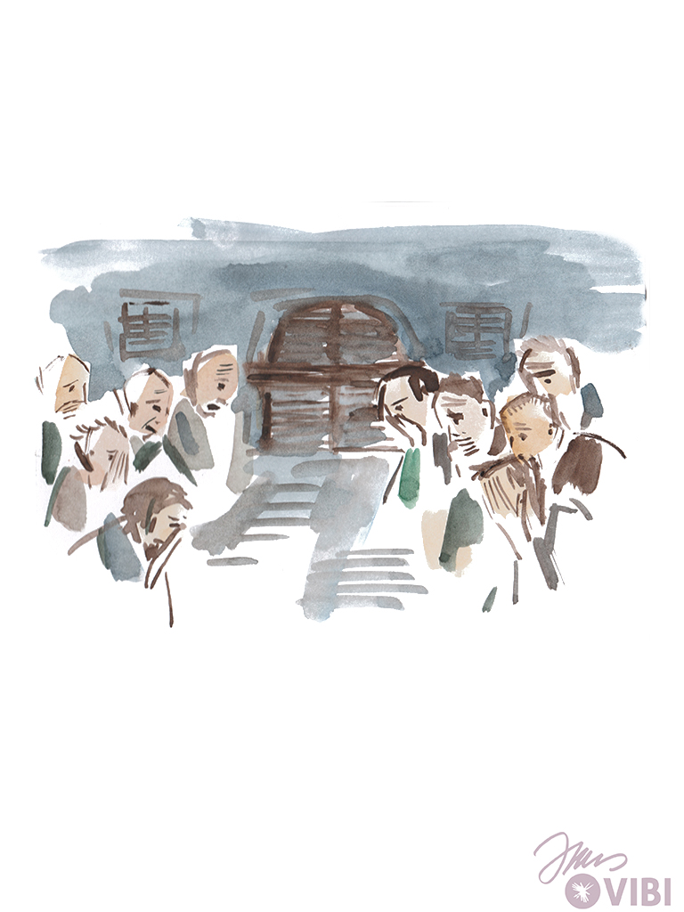 Die Freunde von Jesus sitzen zu Hause. Sie haben Angst und sind traurig. Die Tür ist zugesperrt.