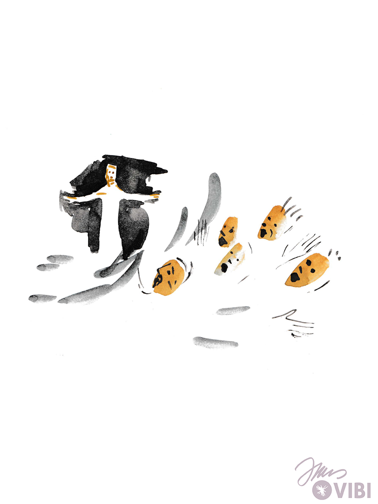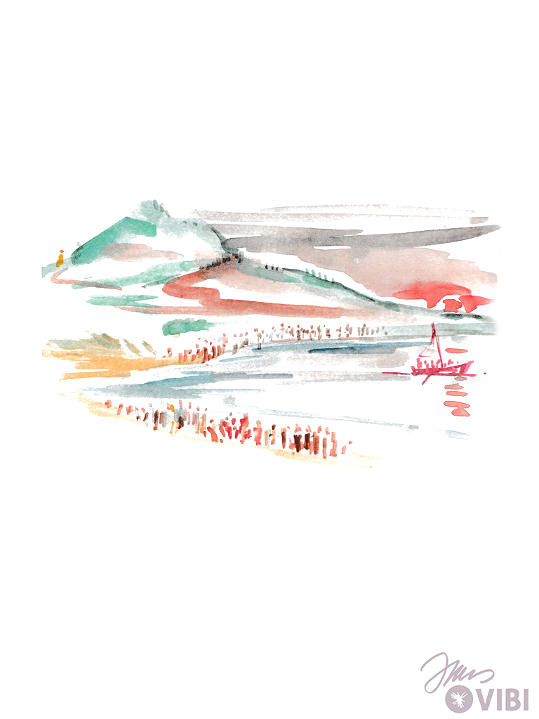 Viele Menschen sind da. Jesus erzählt viel. Er gibt seinen Freunden einen Auftrag: Fahrt mit dem Schiff ans andere Ufer! Ich möchte mich noch von den Menschen verabschieden.“