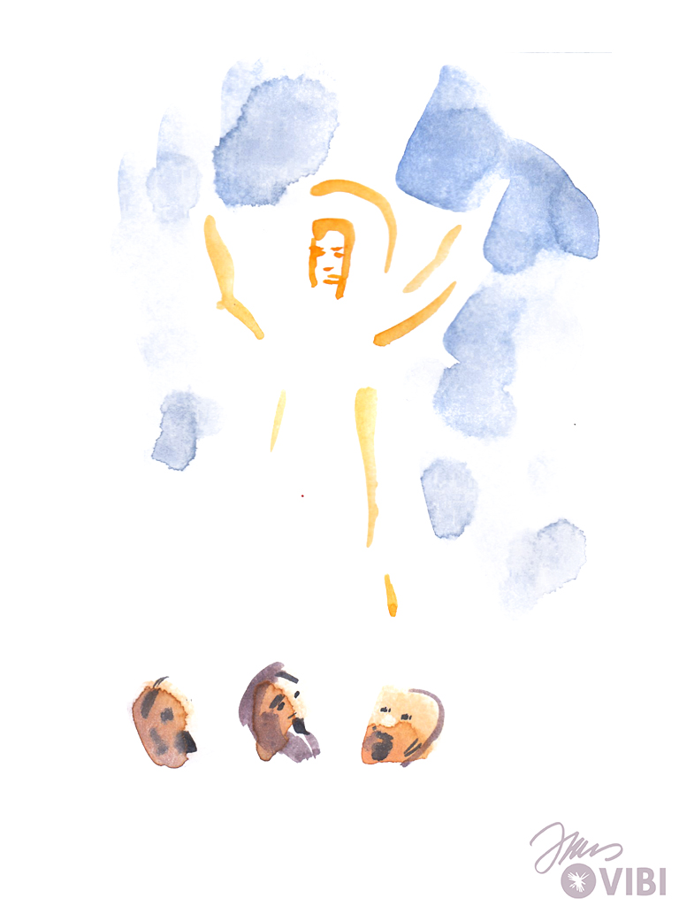 Jesus und seine Freunde gehen wieder vom Berg hinab. Jesus sagt ihnen: „Erzählt niemandem davon! Erzählt erst davon, wenn ich aus den Toten auferstanden bin!"
