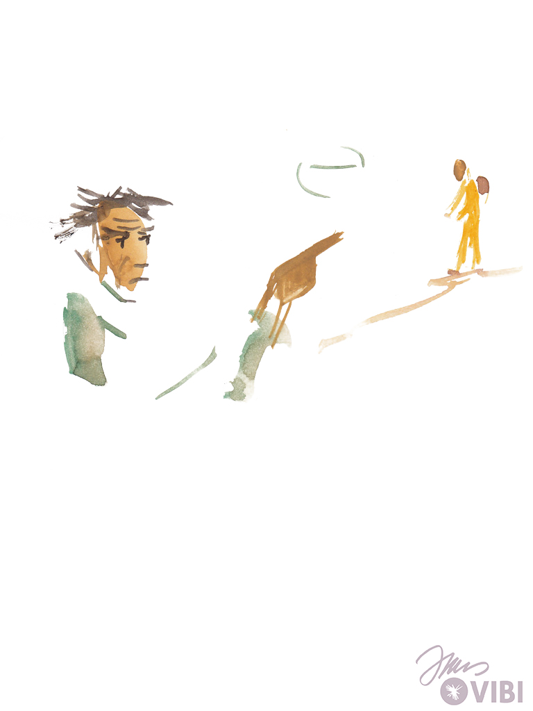 „HE IS RELIEVED. SUDDENLY HE SEES A MAN. THIS MAN HAS TO PAY BACK A SMALL AMOUNT OF MONEY.“