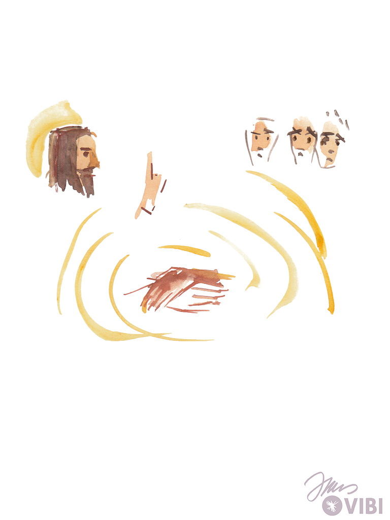 „MANY PEOPLE SEE THIS. THEY RUN TO THE KING. THEY TELL HIM EVERYTHING. THE KING IS VERY ANGRY!“