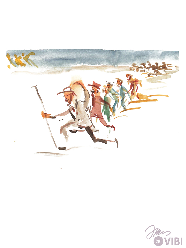 MARY AN JOSEPH START WALKING TO BETHLEHEM.