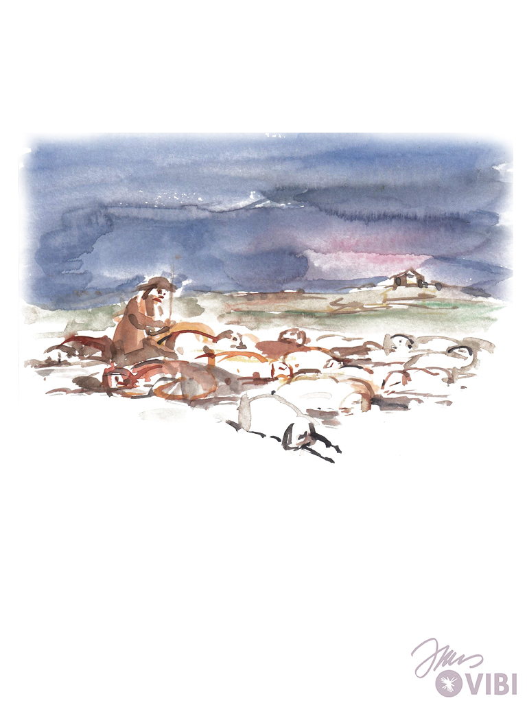 THAT SAME NIGHT THE BABY GETS BORN, SOME SHEPHERDS ARE IN THE FIELDS WATCHING THEIR SHEEP.