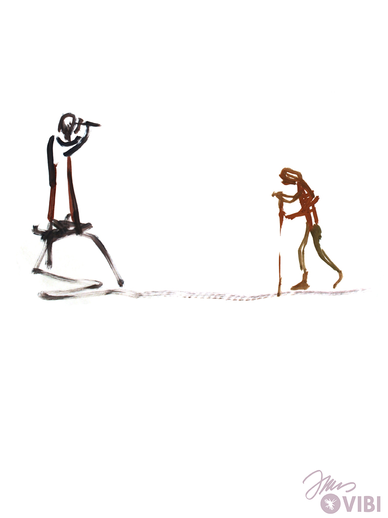 Er findet Arbeit. Er hütet Schweine.