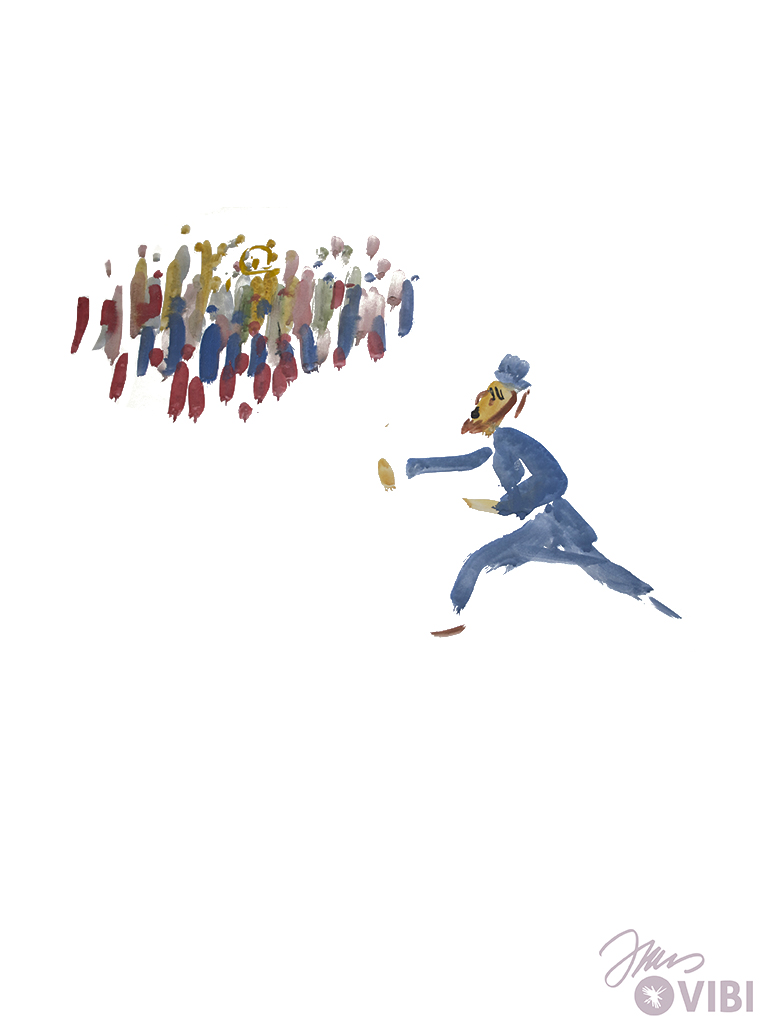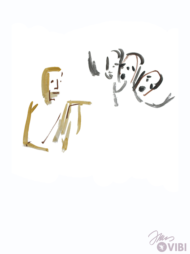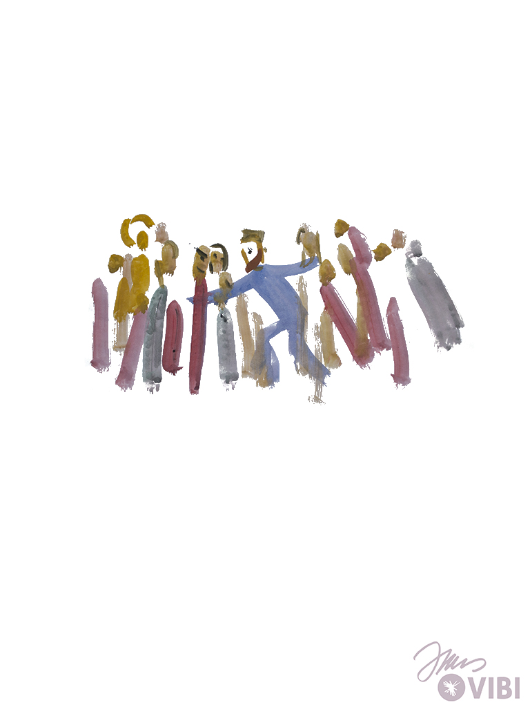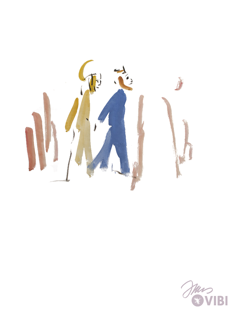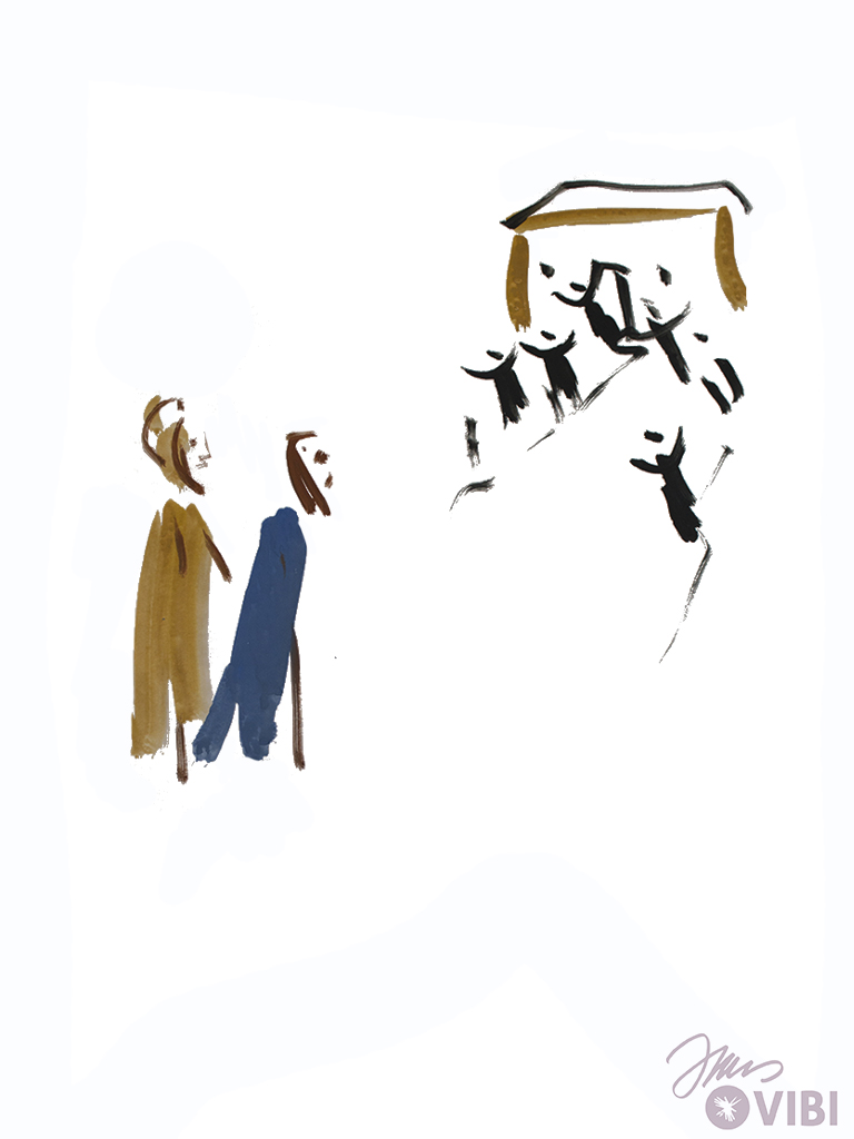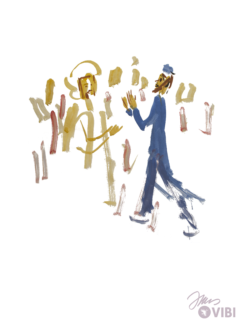 JESUS UND JAIRUS GEHEN NACH HAUSE. VIELE MENSCHEN GEHEN MIT.
