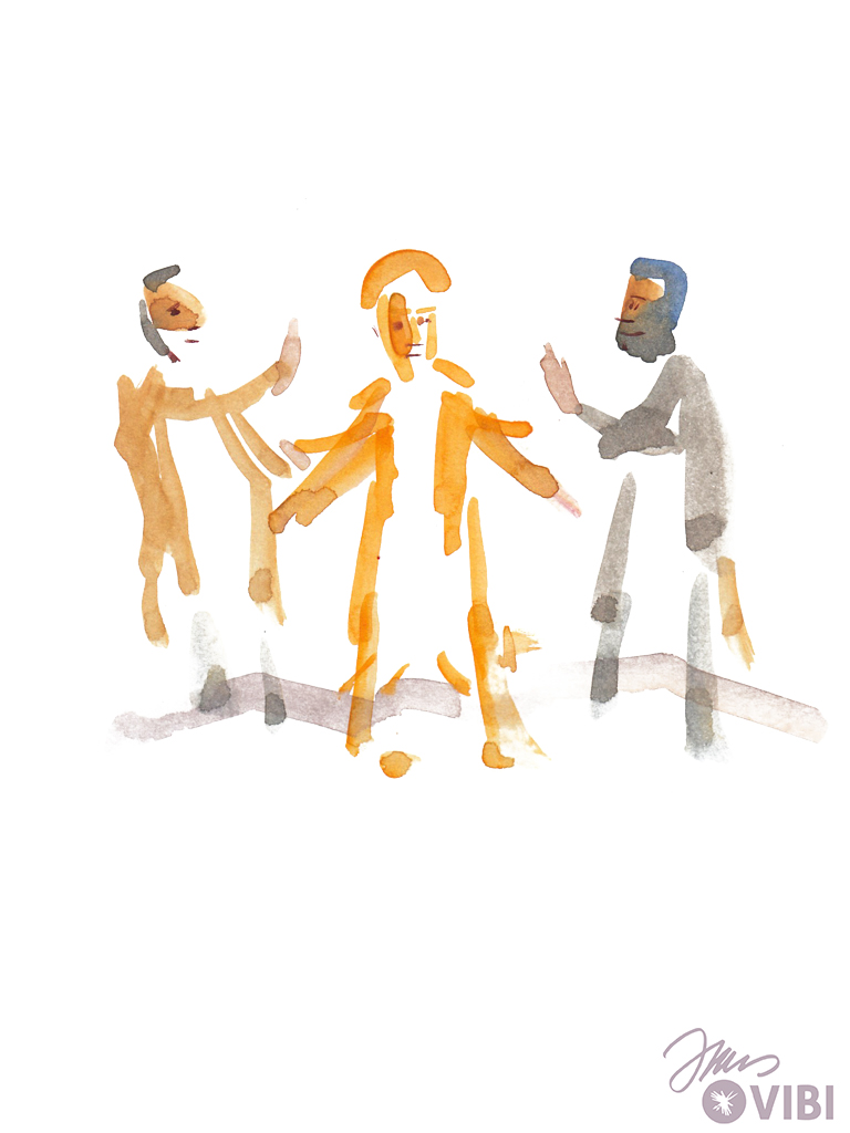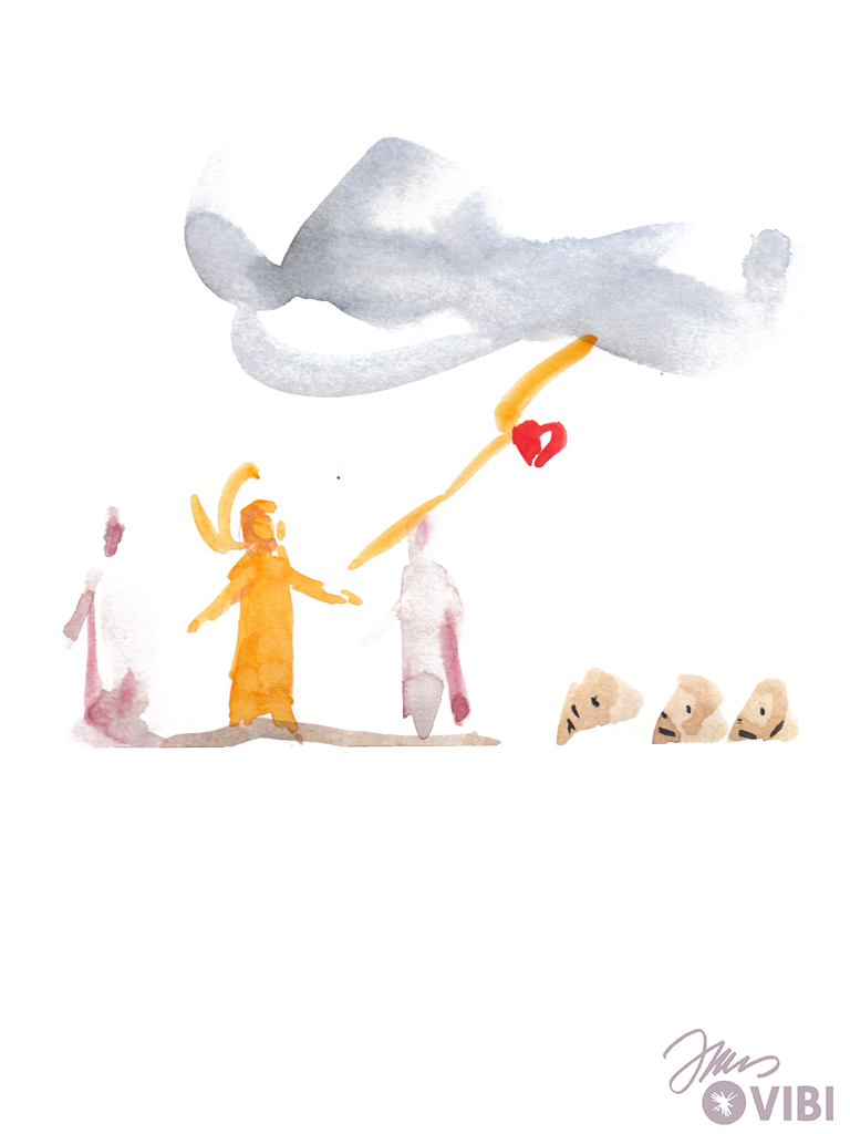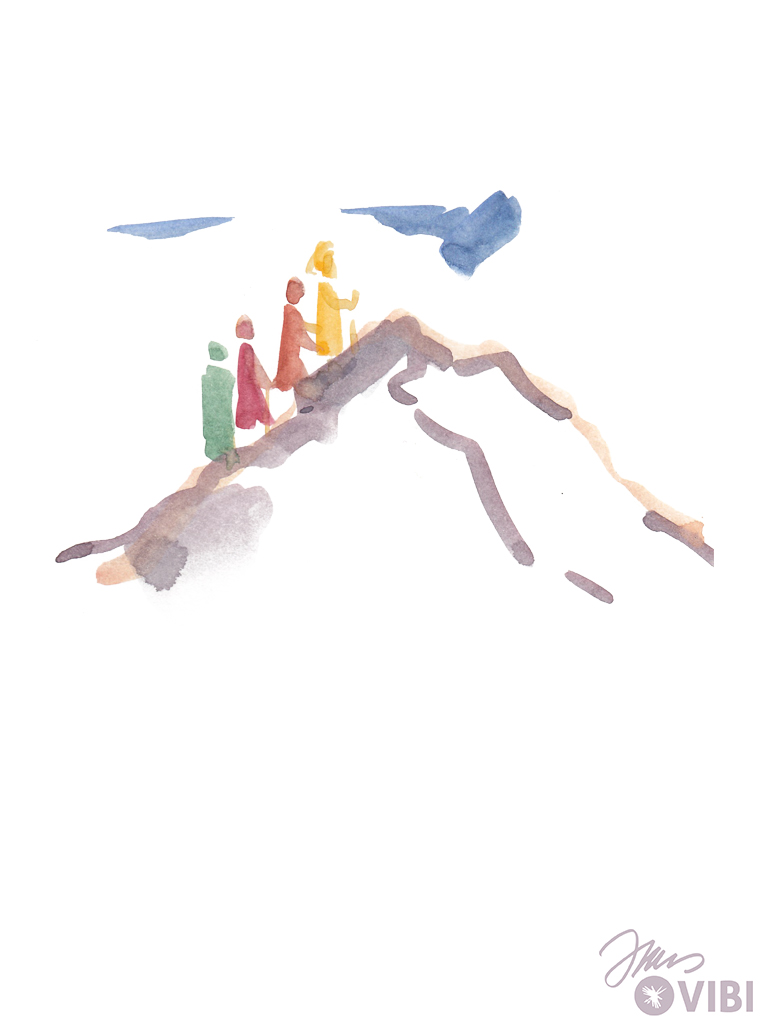 Jesus und seine Freunde gehen wieder vom Berg hinab. Jesus sagt ihnen: „Erzählt niemandem davon! Erzählt erst davon, wenn ich aus den Toten auferstanden bin!"