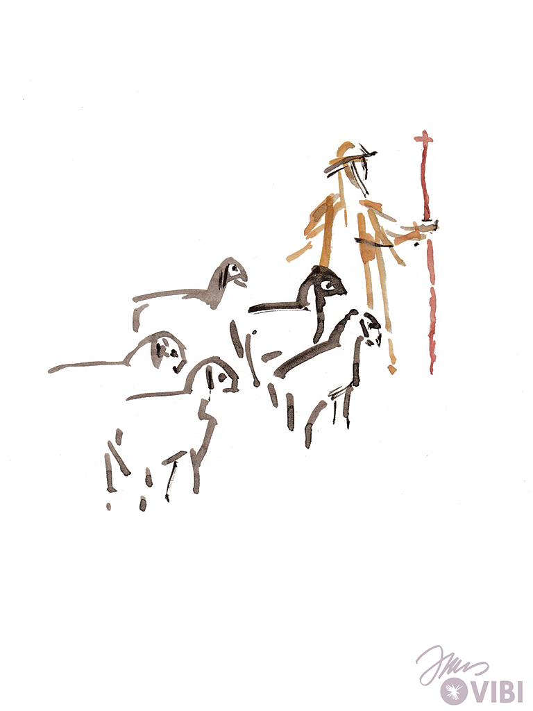 „THE SHEPHERD SAYS HELLO TO ALL THE SHEEP. HE KNOWS THEM. EACH SHEEP IS DIFFERENT.“