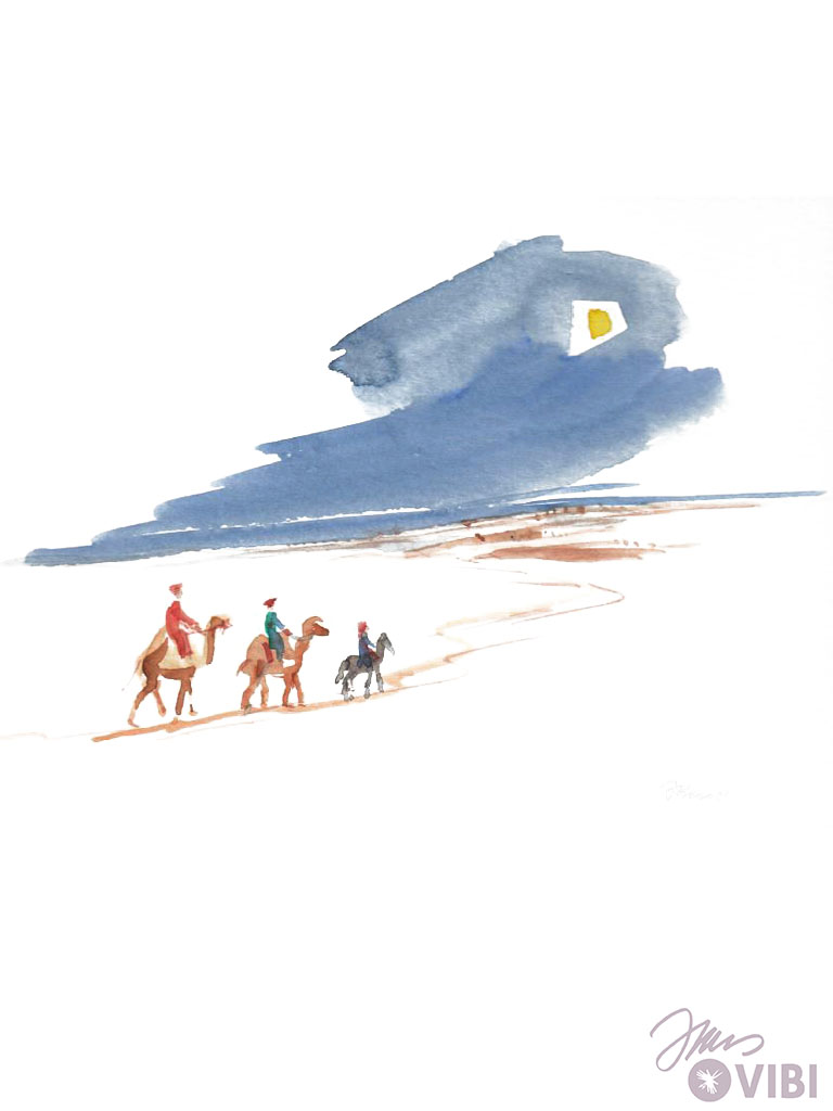 THE THREE WISE MEN GO ON THEIR WAY. THEY COME CLOSER TO BETHLEHEM AND THE STAR.