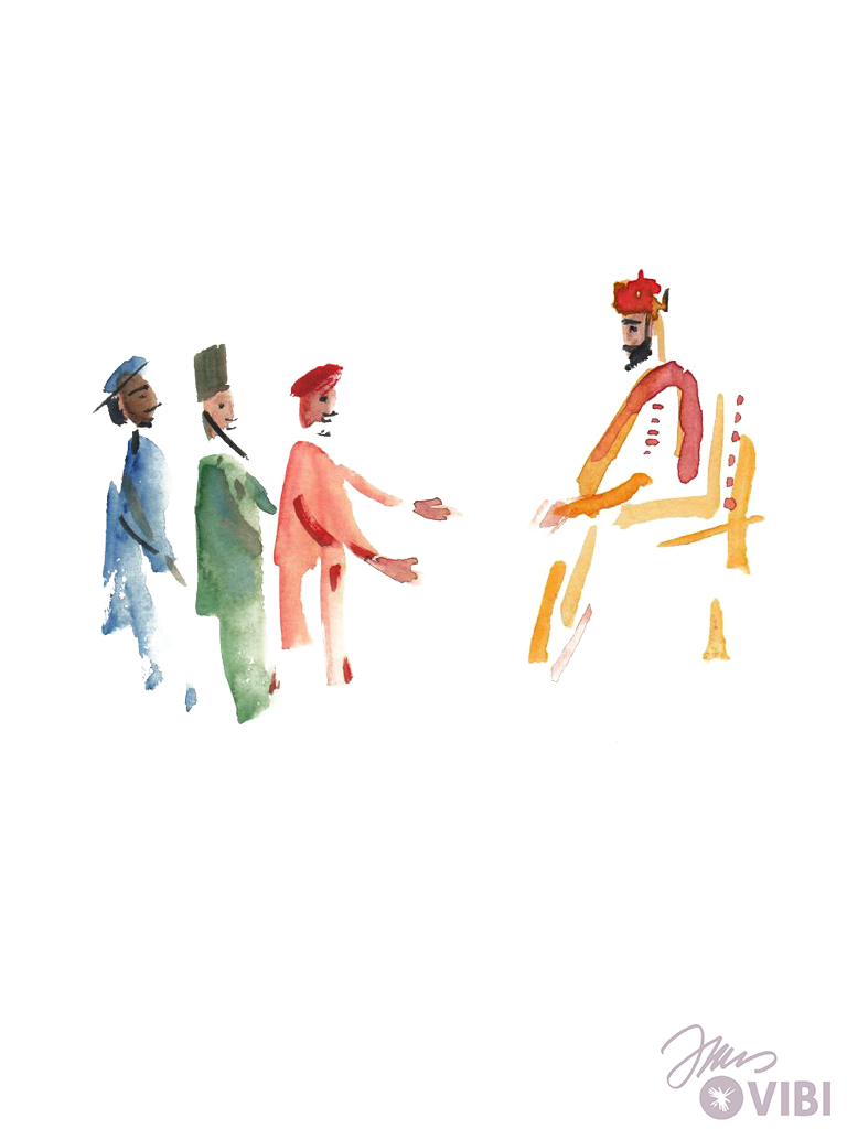 THE THREE WISE MEN COME TO JERUSALEM. THEY MEET KING HEROD. THEY ASK HIM: „WHERE IS THE NEWBORN KING?“